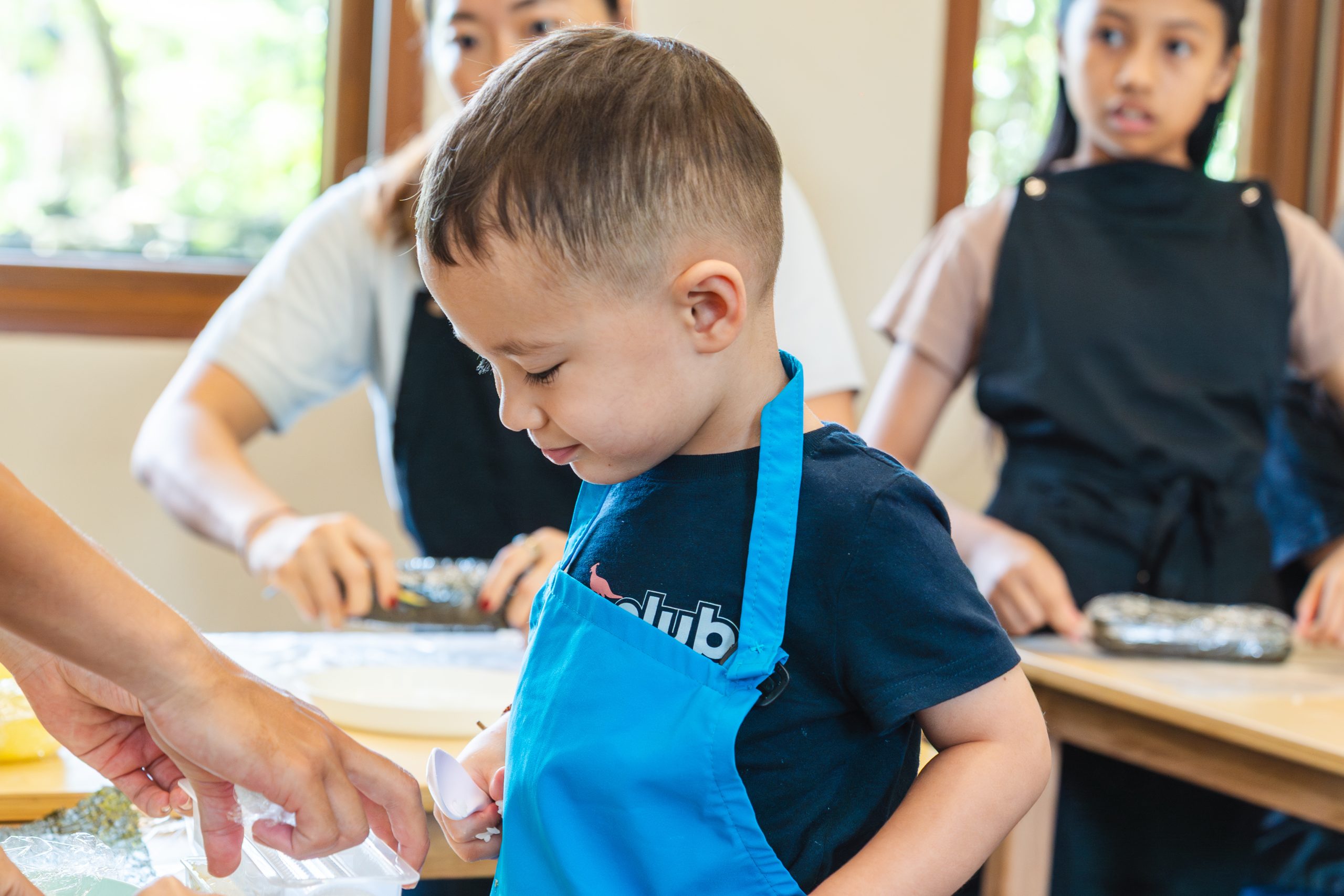 まずは節分に欠かせない恵方巻づくりからスタート。今年の恵方である南南東を向いて、願いごとを思い浮かべながらいただきました。大きな恵方巻を、話さずに最後まで食べきるのは子どもたちにとってなかなか難しい挑戦でしたが、真剣な表情で一生懸命頬張る姿がとても印象的でした。