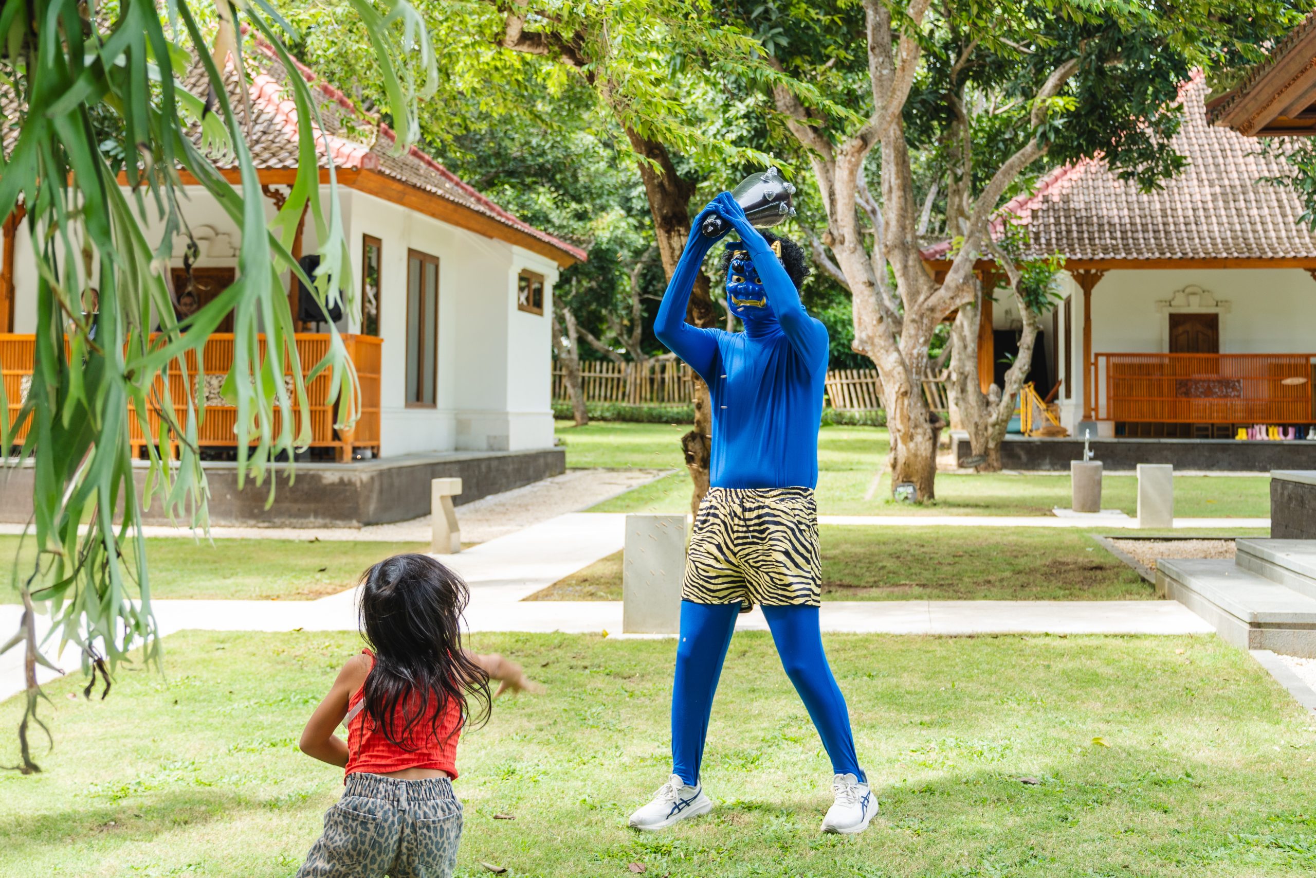 続いては、いよいよ豆まきです。赤鬼と青鬼が登場すると、最初はびっくりしてお母さんやお父さんの背中に隠れてしまう子もいました。しかし、時間が経つにつれて少しずつ慣れ、「おにはそと!ふくはうち!」の掛け声とともに、勇気を出して鬼に向かって豆を投げることができました。